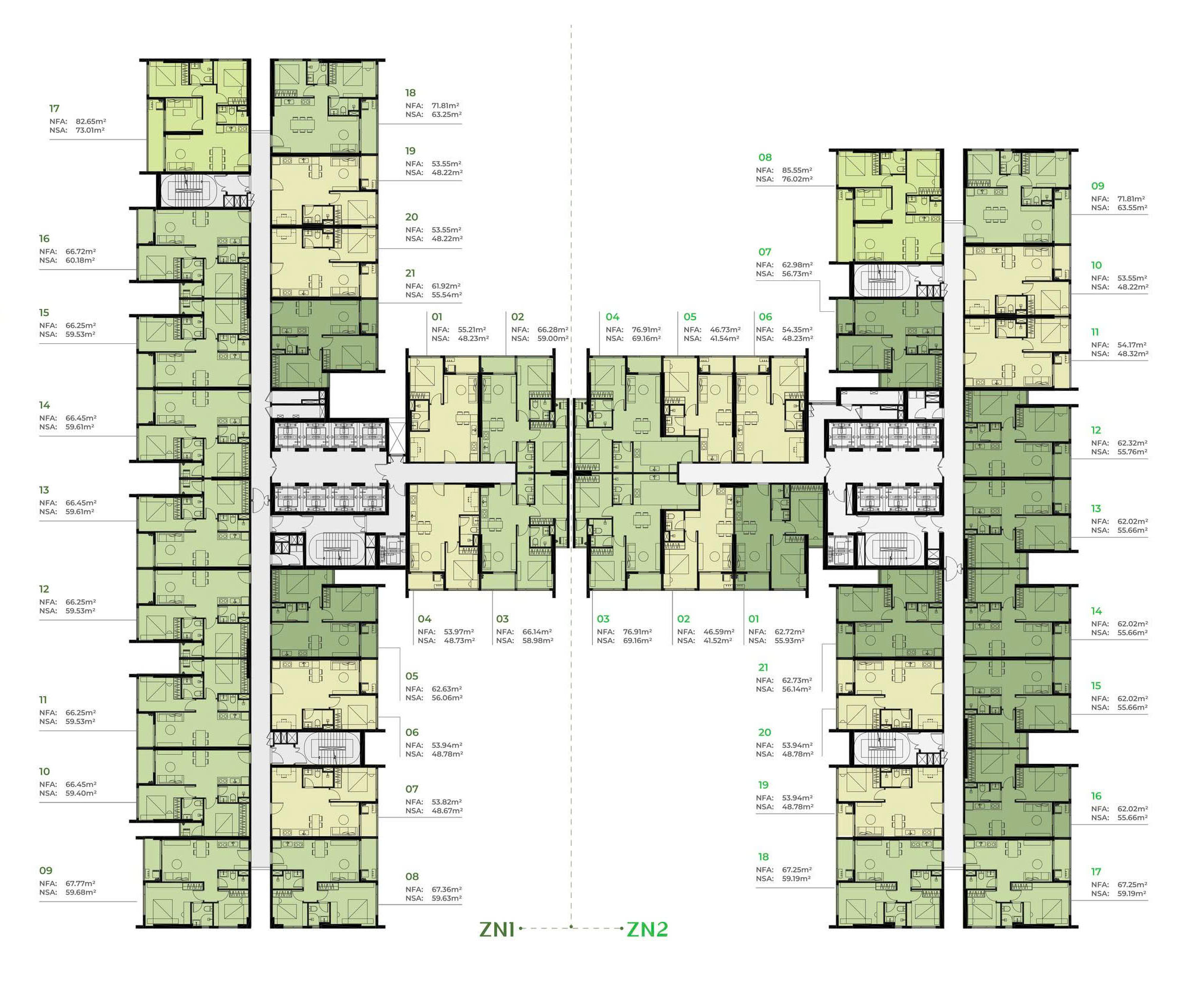 Bố trí các toà tháp căn hộ thông minh, hài hoà cùng chuỗi tiện ích và cảnh quan xanh đảm bảo không gian sống trong lành, gần gũi tự nhiên. Ngoài ra, mỗi toà nhà gồm có: