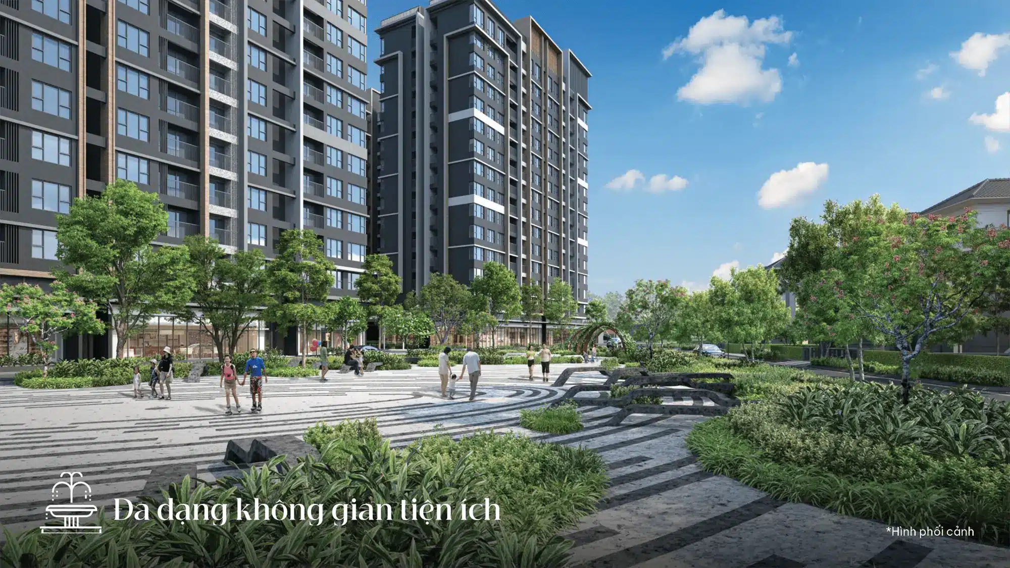 Cư dân tương lai sẽ được tận hưởng cảnh sắc xanh tươi, khí trời thoáng đãng và trải nghiệm những tiện ích sống thảnh thơi như resort ngay tại nhà.