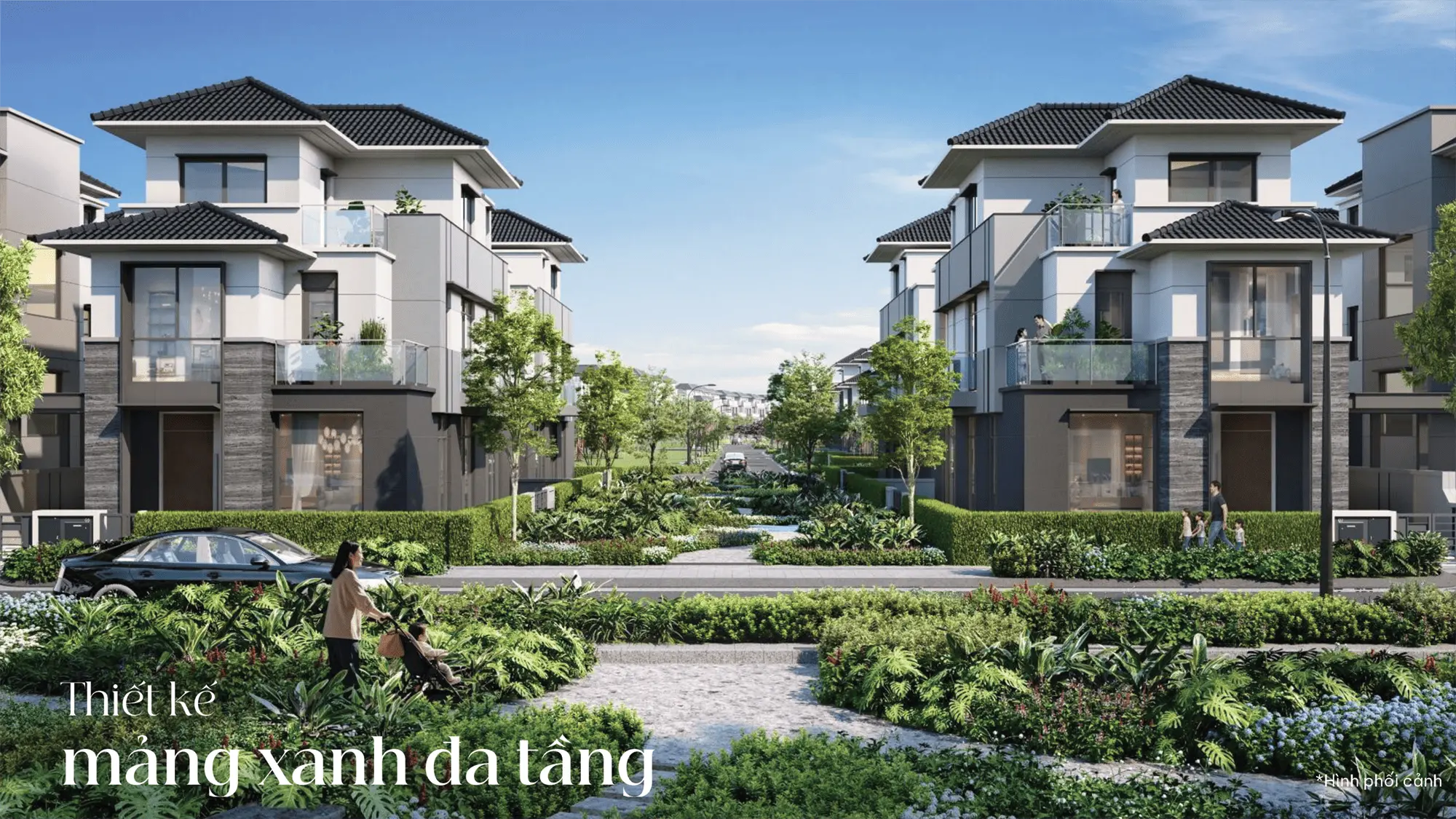 Loại hình sản phẩm: Biệt thự đơn lập, Biệt thự song lập, Biệt thự tứ lập, Nhà liên kế có sân vườn và căn hộ.
