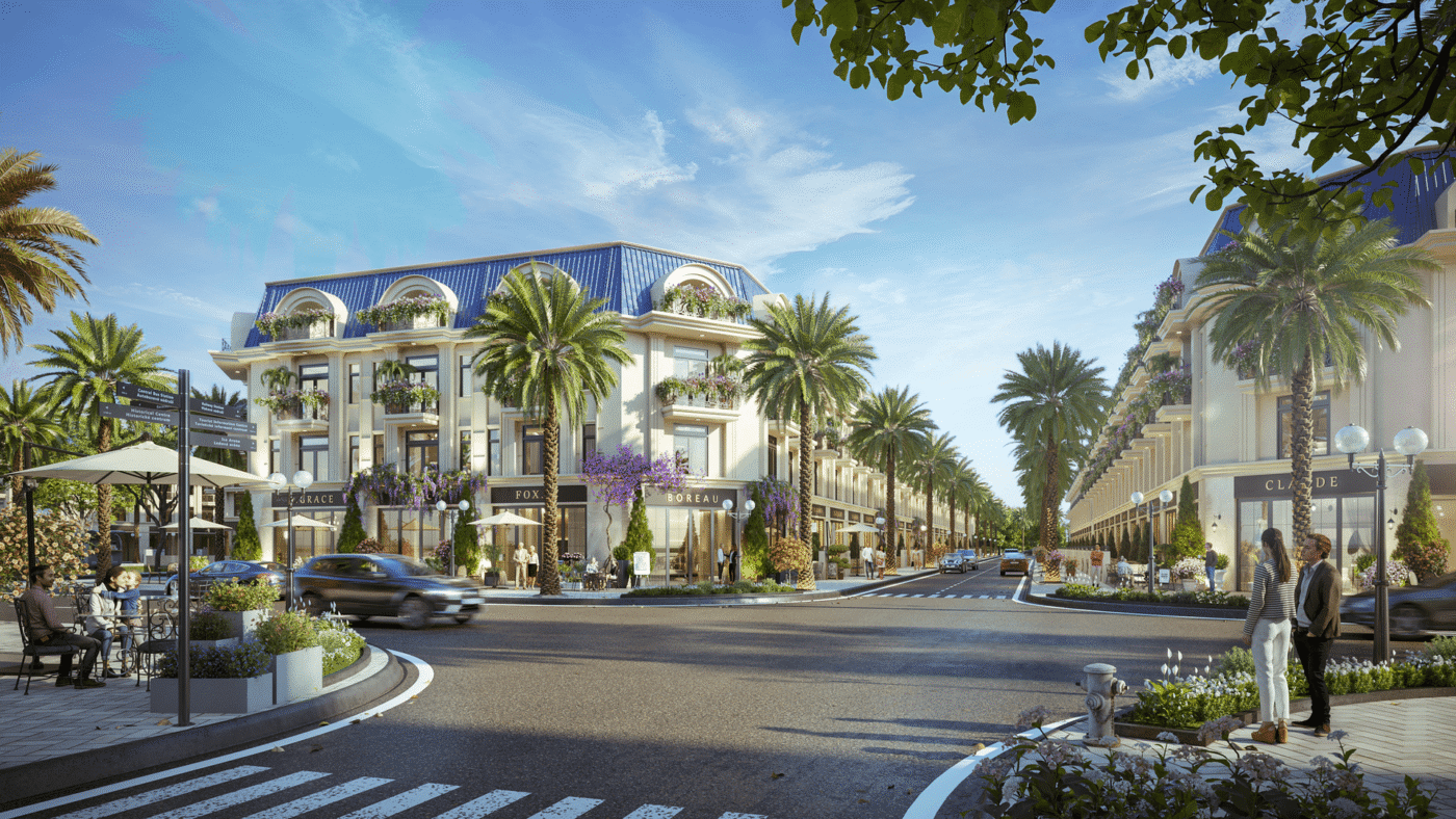 Khu vực thương mại – dịch vụ: Các cửa hàng tiện ích, siêu thị mini, quán cà phê, nhà hàng phục vụ nhu cầu mua sắm và giải trí ngay trong dự án.